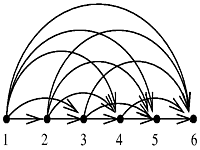 DAG is short for Directed Acyclic Graph, a directed grap with no directed cycles, that is, for any vertex v, there is no nonempty directed path that starts and ends on v. DAGs can be considered to be a generalization of trees in which certain subtrees can be shared by different parts of the tree. In a tree with many identical subtrees, this can lead to a drastic decrease in space requirements to store the structure. The Figure on the right shows a simple DAG structure (a) and how the the distances between terms may be calculated (b).
