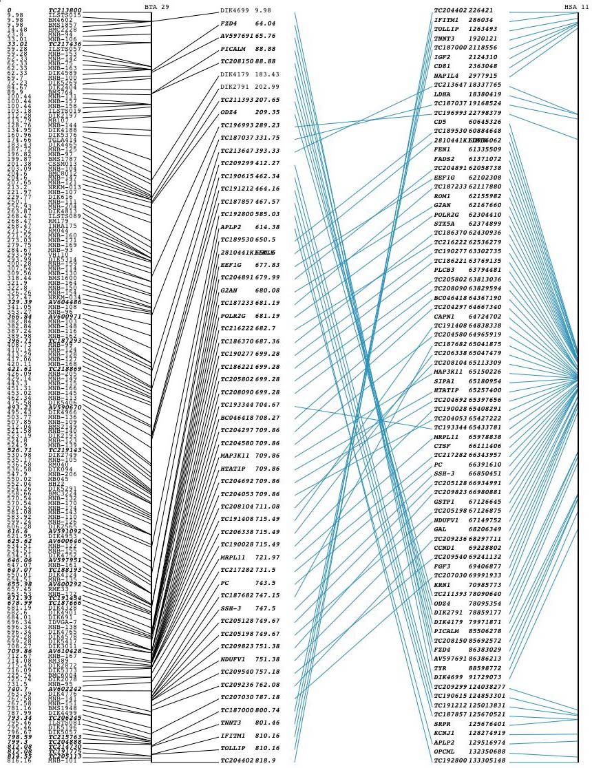 • This is supplimentary data from the paper: "A comprehensive radiation hybrid map of the bovine genome comprising 5593 loci." Genomics, 85(4):413-24, 2005