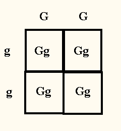 The answer is:0 GG : 4 Gg : 0 gg 4 green : 0 yellow