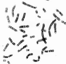Stained and magnified chromosome specimen of swine. Finding the Link
