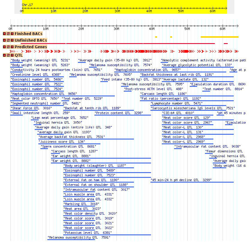 Zhi-Liang Hu, Antonio M. Ramos, Sean J. Humphray, Jane Rogers, James M. Reecy and Max F. Rothschild1 Use of genome sequence information for meat quality trait QTL mining for causal genes and mutations on pig chromosome 17 Frontiers in Genetics, 2:43. (2011 July 14)